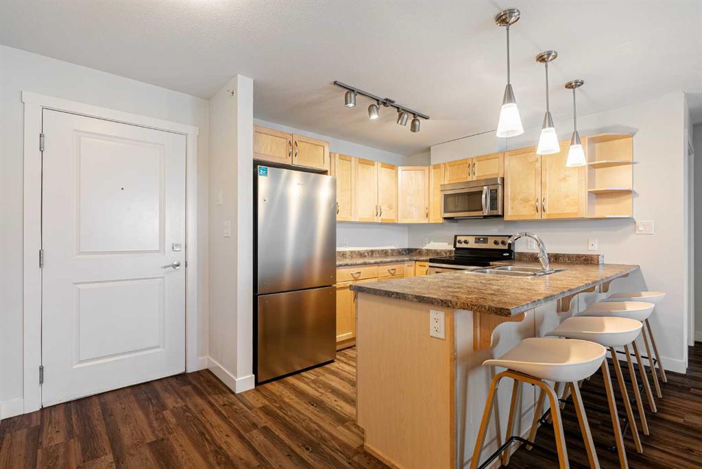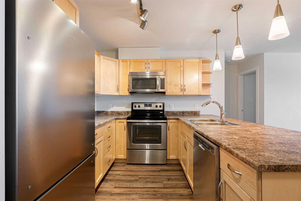Welcome to #405 – 111 Denholm Gate! Charming and full of natural light, this TOP FLOOR 2-bedroom, 2-bathroom condo offers 933 sq ft of thoughtfully designed living space right in the heart of downtown Fort McMurray. Step inside to an open-concept layout that includes a bright living area and a modern kitchen featuring newer appliances and a stylish eat-up breakfast bar — perfect for casual dining and entertaining. The entryway has dual closets for added storage, and the in-suite laundry room includes extra space to keep everything organized. Enjoy your morning coffee or evening unwind on your private balcony, offering beautiful views from the top floor. The unit comes with TWO PARKING STALLS: one heated underground spot (#12) and one above-ground stall (#26) — a rare and valuable combination. Located just minutes from everything you need: scenic walking trails, Keyano College, Syncrude Sport & Wellness Centre, Heritage Park, shopping, restaurants, and other vibrant downtown amenities. Don't miss your opportunity to live in one of Fort McMurray’s most convenient locations. Call today to book your private viewing!